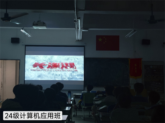 当晚,学校精心安排不同年级观看不同的经典影片。23级各班级学生齐聚教室,全神贯注地观看《志愿军:雄兵出击》。影片中,志愿军战士们以无畏的勇气和坚定的信念,向着敌人奋勇冲锋,那一幕幕激烈的战斗场景,如同一幅幅生动的历史画卷在同学们眼前展开。同学们被深深吸引,时而为战士们的险境而揪心,时而因战斗的胜利而欢呼。他们仿佛穿越时空,亲身感受到了志愿军战士们保家卫国的热血豪情,眼神中透露出对先辈们的崇敬之情。
