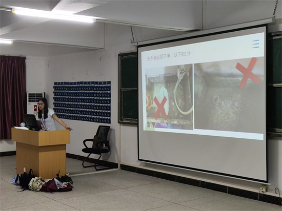 随后,学生会综合实践部干部针对“宿舍卫生内务整理标准”进行了细致讲解,结合日常检查中的常见问题,通过图文并茂的课件展示,将抽象标准转化为具体可参照的“标尺”,帮助同学们清晰掌握宿舍卫生内务整理的要点与规范。会议号召同学们要规范作息时间,保障睡眠,严格按照内务标准,落实卫生制度,遵守相关安全规定,杜绝违规用电和使用违禁物品。