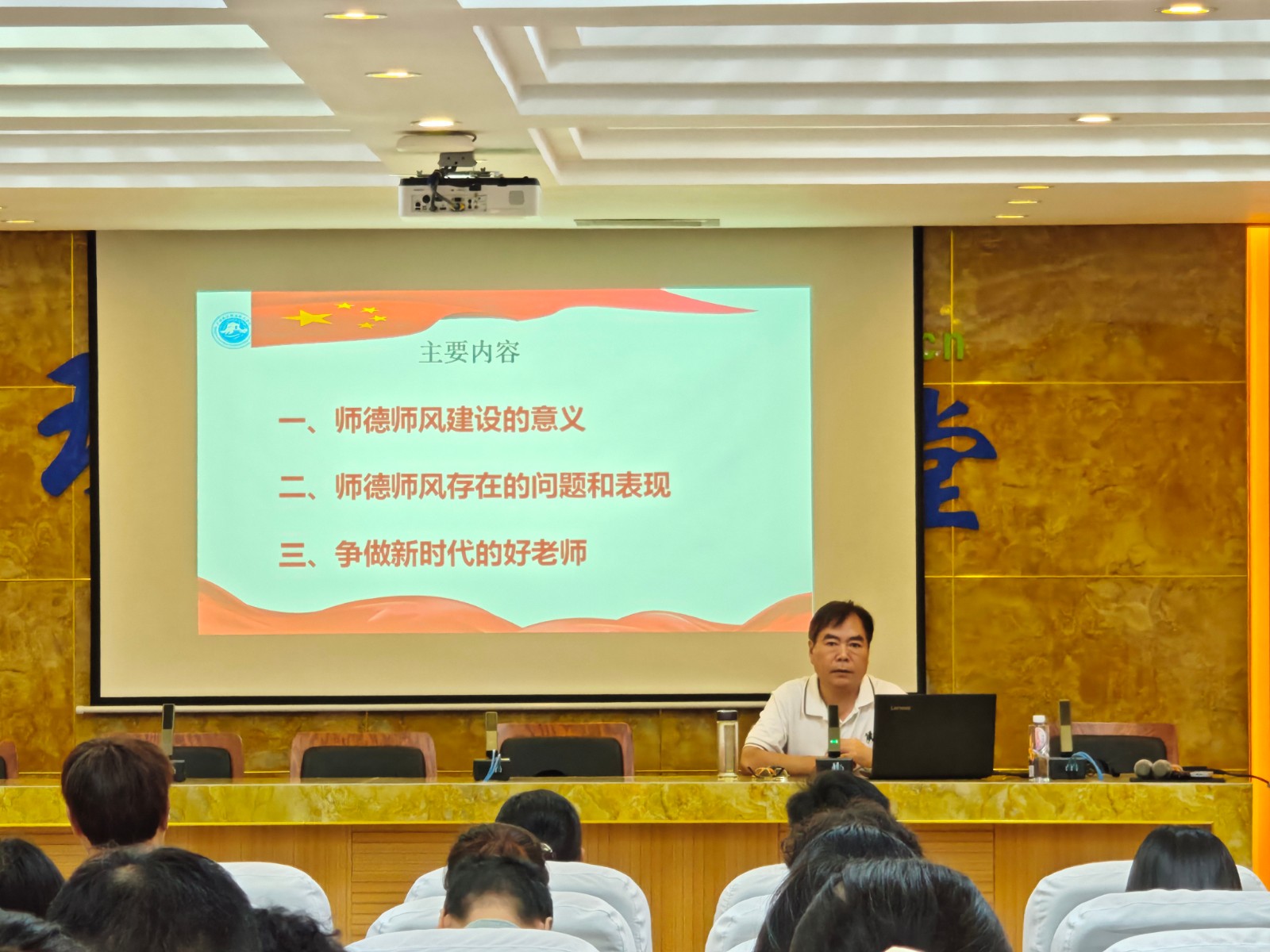 百年大计,教育为本。教师是立教之本、兴教之源,承担着让每个孩子健康成长、办好人民满意教育的重任。今年教师节的主题是“以教育家精神铸魂强师,谱写强国建设华章”,这一主题强调了教师在教育事业中的重要性以及新时代赋予的使命担当。为深入贯彻落实习近平总书记关于教育工作的重要讲话精神,我校近日组织校内教职工开展“立师德 正师风 强师能”师德师风培训会。