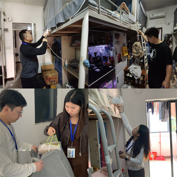 行动开展前,安全检查组周密部署、细化分工,确保检查工作高效有序推进。此次突击检查聚焦宿舍安全关键环节,重点排查违规电器使用、私拉乱接电线等问题,尤其对私拉排插至床上这一高危行为进行逐项核查,同时细致检查宿舍内是否存放管制刀具等危险物品。检查过程中,同学们积极配合,检查组对宿舍各个角落进行全面排查,针对部分宿舍存在的卫生问题,现场督促同学们及时开窗通风、清理垃圾,引导大家养成良好生活习惯。针对检查中发现的个别宿舍吸烟等问题,检查组当即进行现场整改指导,并对相关学生开展安全教育,切实将安全隐患消除在萌芽状态。