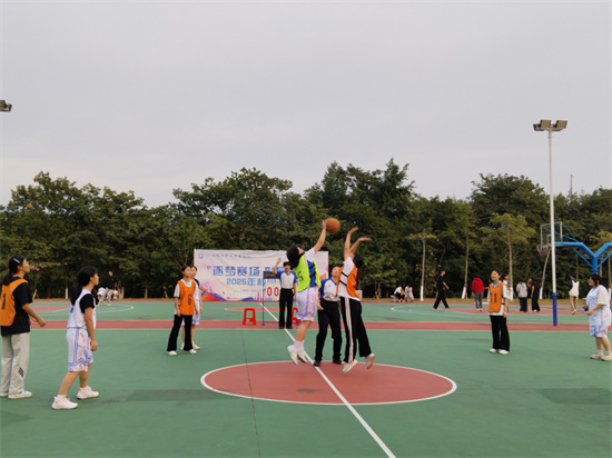 女子组赛场同样斗志昂扬。本届赛事共有十支队伍参与,女篮队员们巾帼不让须眉,以饱满的竞技状态展现出耀眼风采。默契的配合、敏捷的进攻、坚韧的防守,赢得场边阵阵喝彩。经过多轮激烈角逐,25级药剂2班、23级中药班、24级护理1班、25级宠物养护与经营班凭借扎实技术与出色发挥,成功跻身四强。她们用奔跑与汗水,生动诠释了“青春无畏,逐梦扬威”的体育精神。