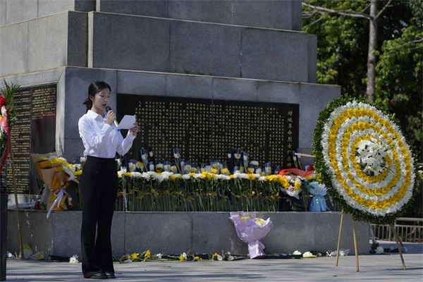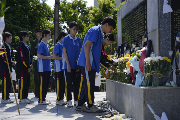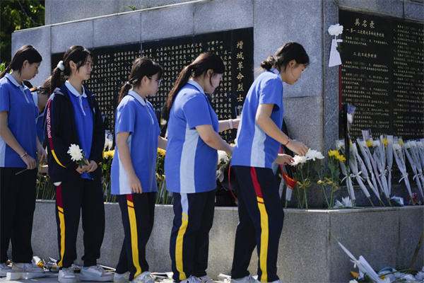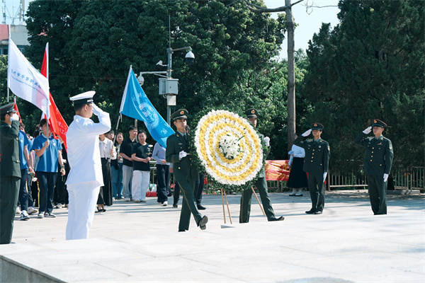 上午8时,同学们统一穿着校服、佩戴团徽,在学校南门集合签到,乘坐大巴有序前往增城革命烈士纪念碑。祭扫仪式庄重肃穆,全体人员整齐肃立。校长曹军副教授带领师生代表缓步上前,向革命烈士敬献鲜花、整理缎带,全体师生低头默哀致敬,以最诚挚的敬意深切追思先烈们的英勇事迹与奉献精神。学生代表在发言中抒发对革命先烈的崇敬与缅怀,表达了新时代青年传承红色血脉、矢志奋斗报国的坚定决心。